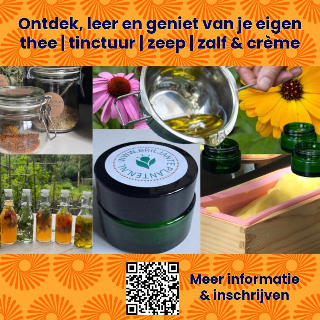 Dus ben je nieuwsgierig welke (wilde) planten je kunt gebruiken en waarvoor? En wil je weten waarom je soms een culinaire olie maakt en een andere keer tinctuur of thee? Wil je meer leren over de inhoudsstoffen van planten, hoe je die onttrekt aan planten en hoe je planten oogst, droogt, bewaart en verwerkt? En wil je vooral ook praktisch aan de slag en verschillende kruidenbereidingen leren maken, zoals bijvoorbeeld zalf, crème, zeep, thee, azijn of tinctuur? Schrijf je dan in voor deze tweedaagse cursus!